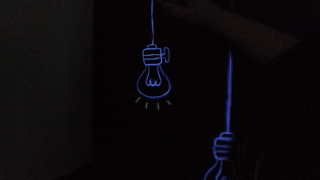 Queríamos un dibujo sencillo, sin texto, por lo que al final nos decidimos por unas bombillas decorativas. Al ser una cocina, podríamos haber creado un espacio para lista de la compra, dibujar alguna de nuestras recetas favoritas…